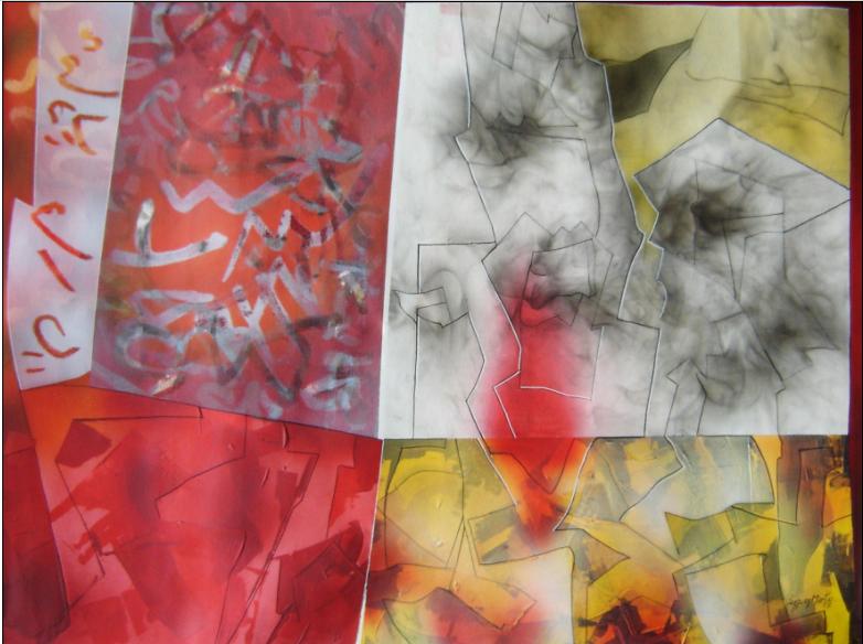 Abstracción en Rojo / Abstraction in Red, acrylic on canvas, 32x39in